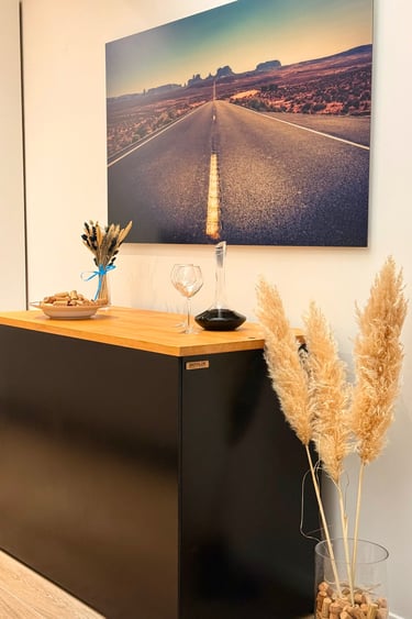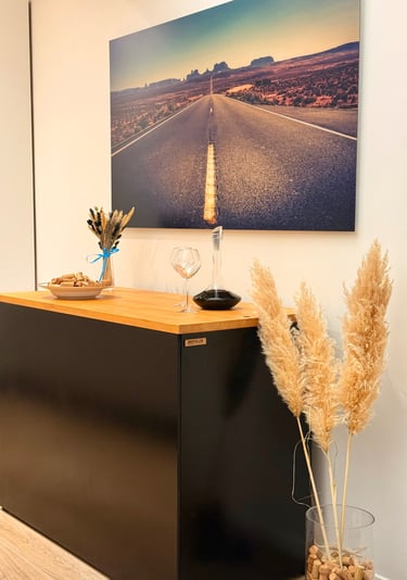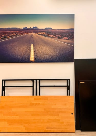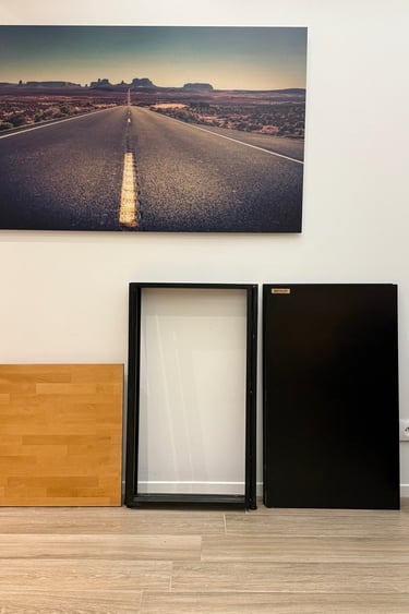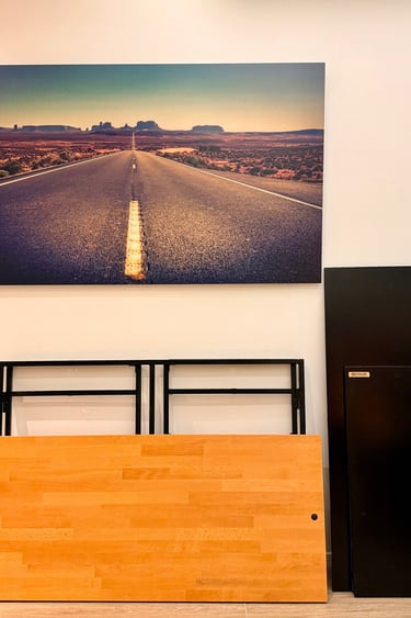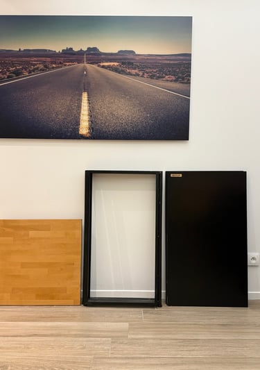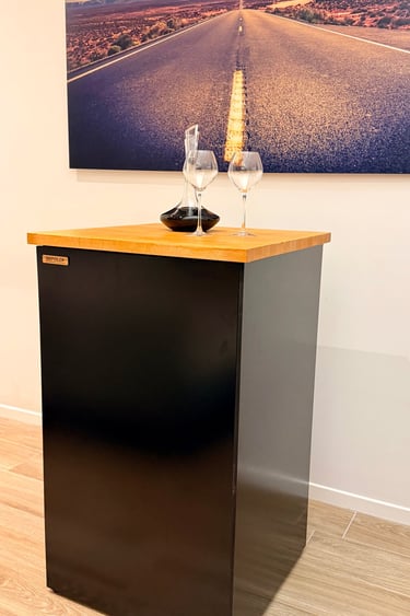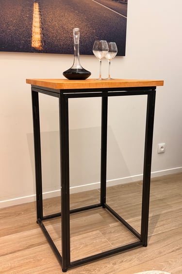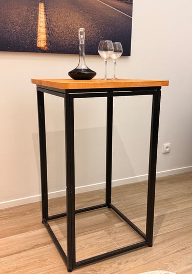 Nous avons développé une gamme de mobilier pliable avec un plateau bois, habillage noire